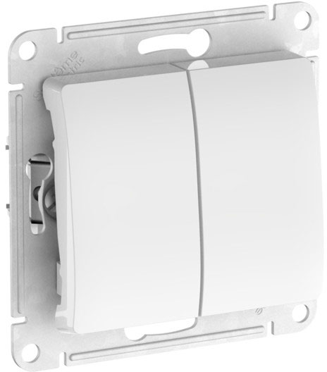 Переключатель Glossa, двухклавишный, без подсветки, цвет - белый
