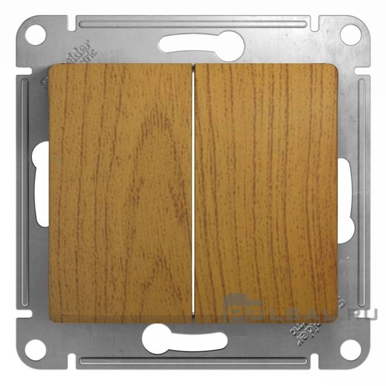 Переключатель Glossa, двухклавишный, без подсветки, цвет - дуб