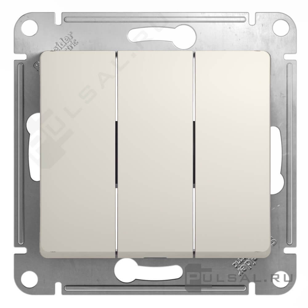 Выключатель Glossa, трехклавишный, без подсветки, цвет - молочный