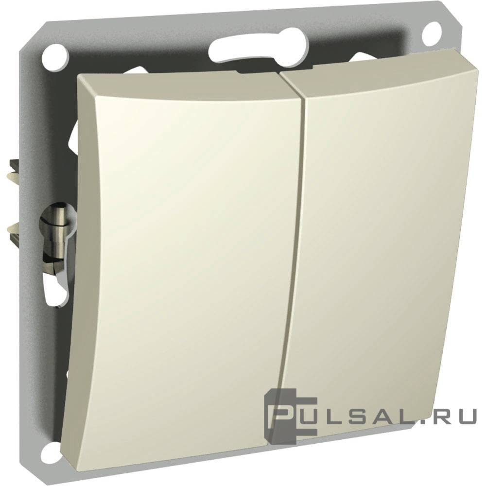 Выключатель Дуэт, двухклавишный, с подсветкой, цвет - бежевый