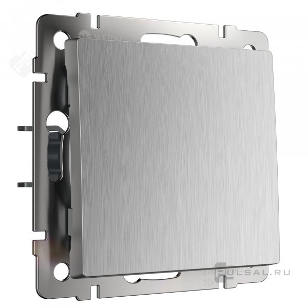 Переключатель Alumax, Split, Slab, Senso, Baguette, Acrylic, Platinum, Elite, Snabb, Stream, Flock, Stark, Fiore, Favorit, Diamant, Aluminium, Antik, Metallic, одноклавишный, без подсветки, цвет - серебряный рифленый