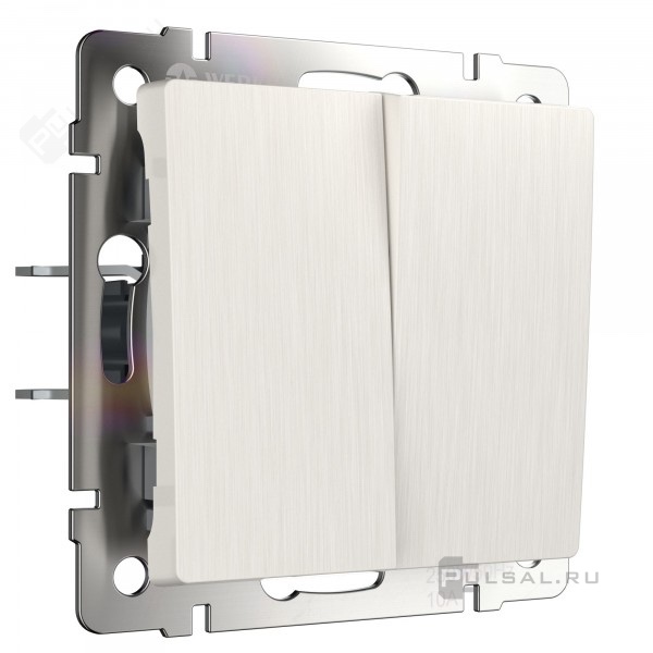 Выключатель Alumax, Split, Slab, Senso, Baguette, Acrylic, Platinum, Elite, Snabb, Stream, Flock, Stark, Fiore, Favorit, Diamant, Aluminium, Antik, Metallic, двухклавишный, без подсветки, цвет - перламутр рифленый