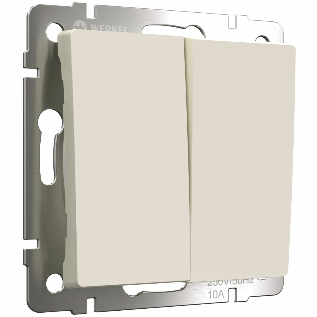 Переключатель Alumax, Split, Slab, Senso, Baguette, Acrylic, Platinum, Elite, Snabb, Stream, Flock, Stark, Fiore, Favorit, Diamant, Aluminium, Antik, Metallic, двухклавишный, с подсветкой, цвет - айвори матовый