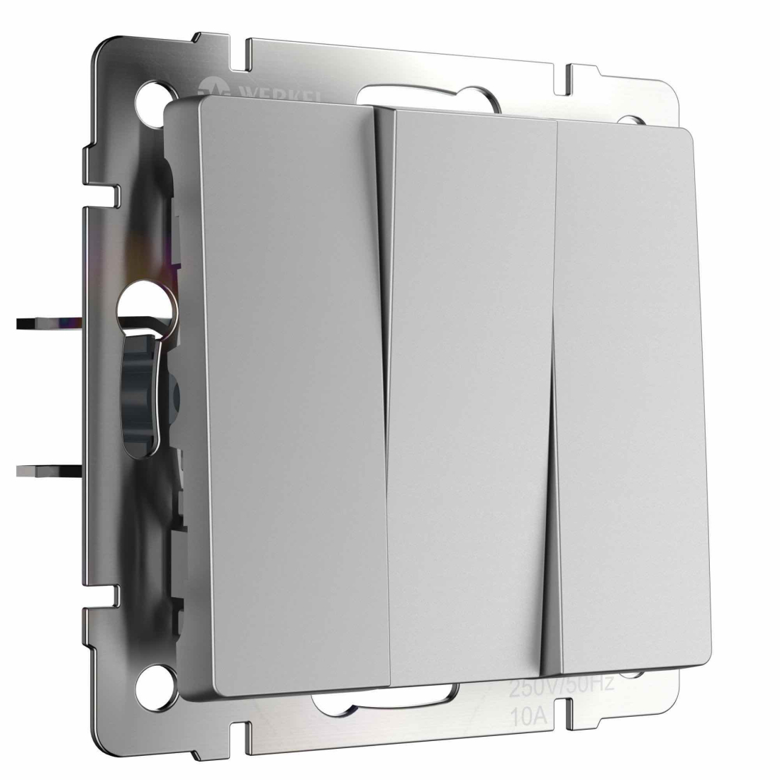 Переключатель Alumax, Split, Slab, Senso, Baguette, Acrylic, Platinum, Elite, Snabb, Stream, Flock, Stark, Fiore, Favorit, Diamant, Aluminium, Antik, Metallic, одноклавишный, с подсветкой, цвет - серебряный матовый