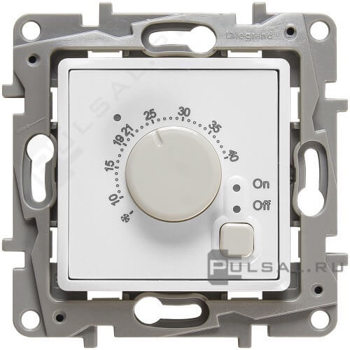 Терморегулятор 16А, НО-контакт, 230В Living Now, Etika, Mosaic, поворотный, датчик t° пола (внешний), без таймера, цвет - белый