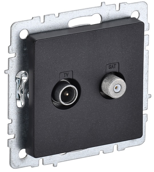 Розетка проходная BRITE, телевизионная (TV), одинарная, цвет - черный