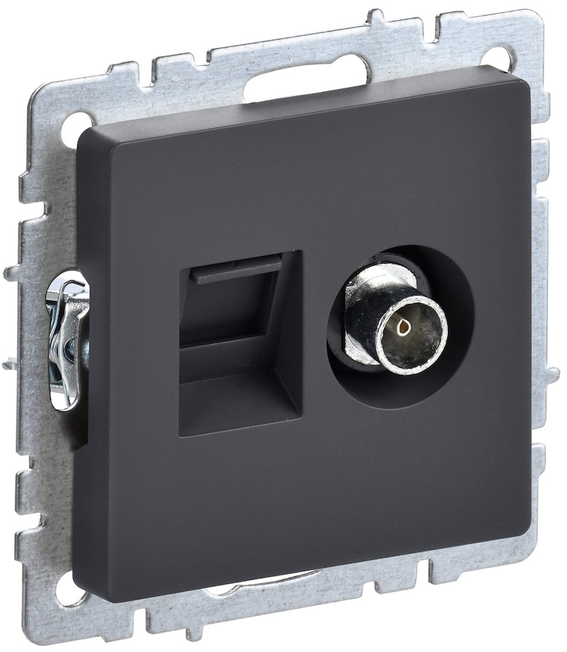 Розетка одиночная TV+RJ45 BRITE, телевизионная (TV), одинарная, цвет - графит