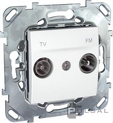 Розетка проходная 17 dB Unica Базовая, Unica Хамелеон, Unica Quadro, телевизионная (TV), радио (R), двойная, цвет - белый
