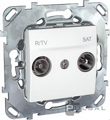 Розетка оконечная 9 dB Unica Базовая, Unica Хамелеон, Unica Quadro, телевизионная (TV), спутниковая (SAT), радио (R), двойная, цвет - белый