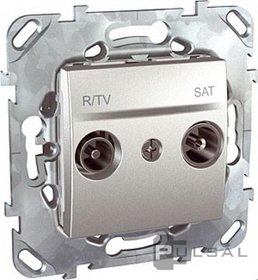Розетка проходная 13 dB Unica Quadro, Unica Top, Unica Class, телевизионная (TV), спутниковая (SAT), радио (R), двойная, цвет - алюминий