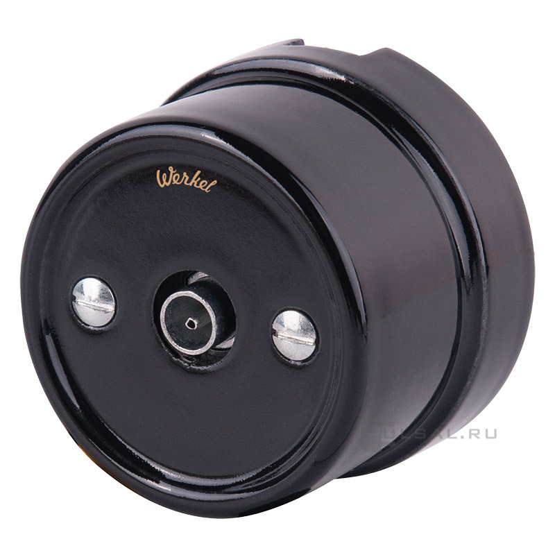 Розетка Retro, без шторок, с заземлением, одинарная, винтовые клеммы, цвет - черный