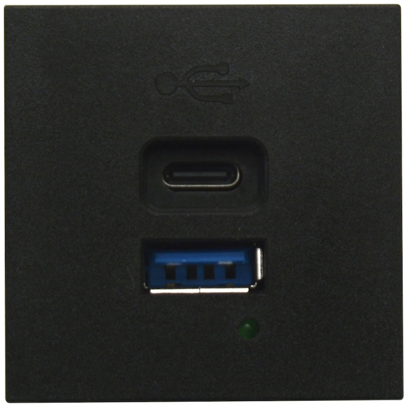 Лючки DDSB, Лючки DFB, USB type-C 5V, USB type-A 5V, двойная, цвет - черный матовый