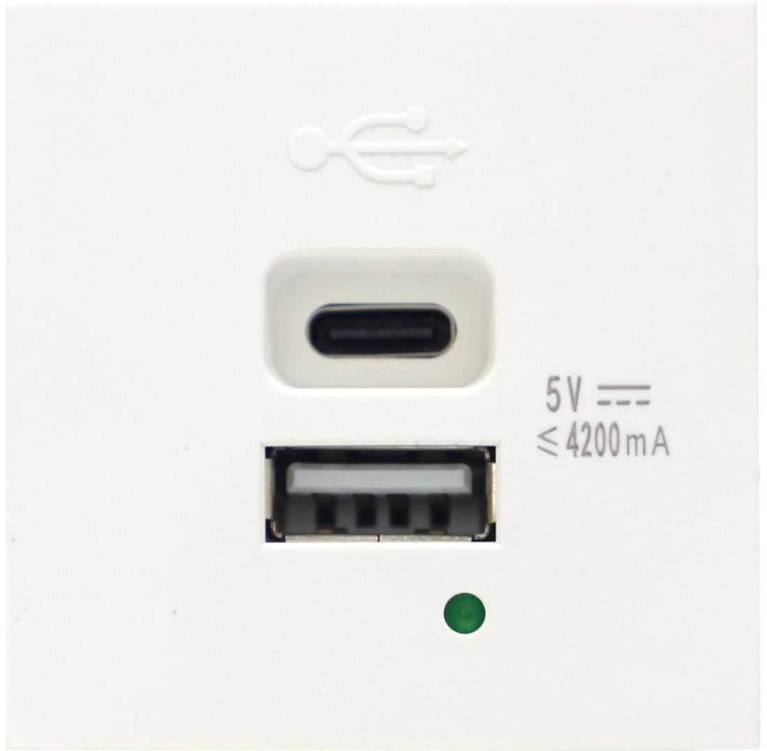 Зарядка USB 2, 1А Лючки DDSB, Лючки DFB, USB type-C 5V, USB type-A 5V, двойная, цвет - белый