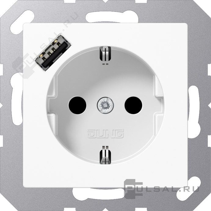 Розетка A VIVA, A creation, A 550, A flow, AS 500, без шторок, с заземлением, одинарная, безвинтовые клеммы, цвет - белый