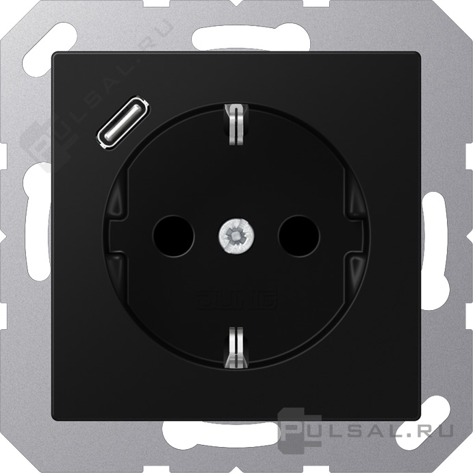 Розетка USB C с электрической розеткой A VIVA, A creation, A 550, A flow, USB type-C 5V, Электр. с USB, одинарная, цвет - черный матовый