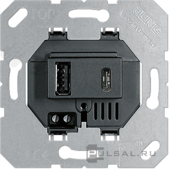 Механизм розетки USB-A + USB-C, 3А A VIVA, A creation, A flow, A 550, AS 500, CD 500, CD plus, LS 1912, LS 990, LS plus, LS 990 Les Couleurs Le Corbusier, LS ZERO, LS-design, SL 500, ECO profi и ECO profi Standart, ECO profi design (ECO Profi Deco), USB type-C 5V, USB type-A 5V, двойная, цвет - черный