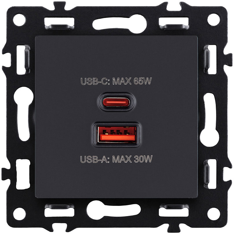 Розетка USB A+C 2.4А с электрической розеткой Asthetik, USB type-C 5V, USB type-A 5V, двойная