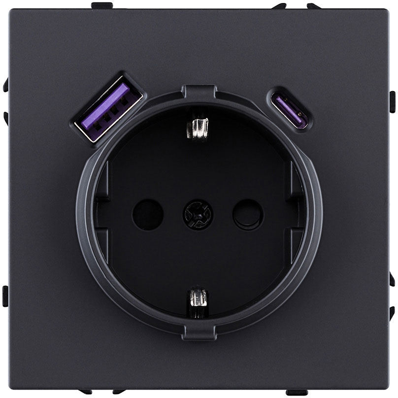 Розетка USB A+C 2.4А с электрической розеткой Eclipse, USB type-C 5V, USB type-A 5V, двойная, цвет - Чёрный матовый