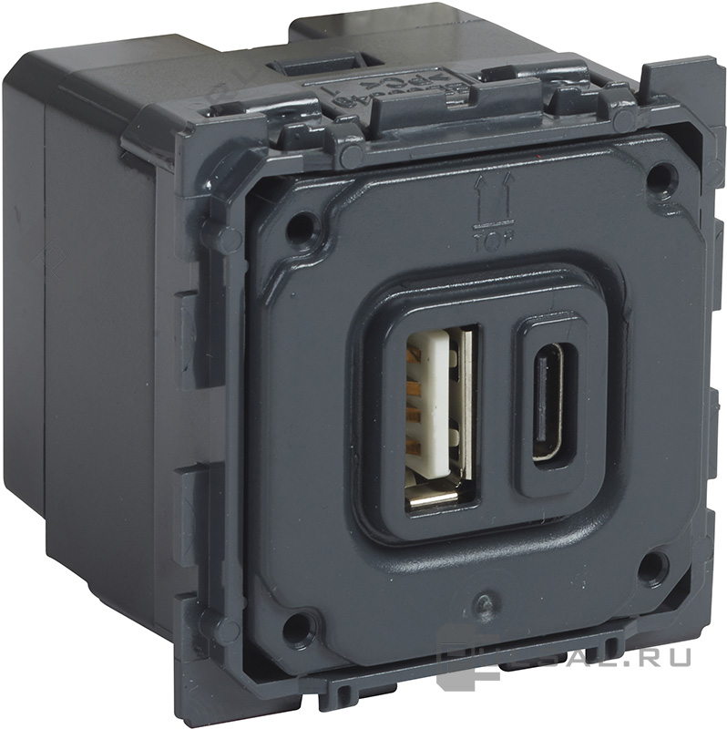 Розетка USB type-C + type-A, 3.0А Celiane, USB type-C 5V, USB type-A 5V, двойная