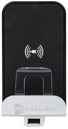 Модуль беспроводной зарядки Qi 1А Etika, USB type-A 5V, Qi беспроводная, одинарная, цвет - антрацит, алюминий