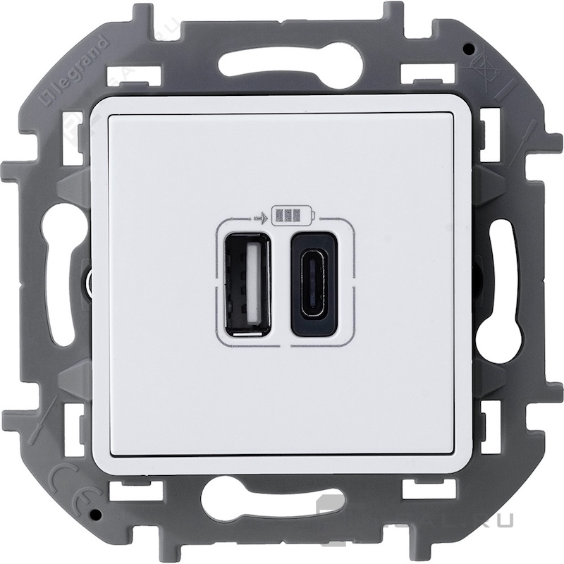 Розетка USB type-C + type-A, 3.0А Inspiria, Mosaic, DLP floor, DLP IP 44, DLP IP 40, USB type-C 5V, USB type-A 5V, двойная, цвет - белый