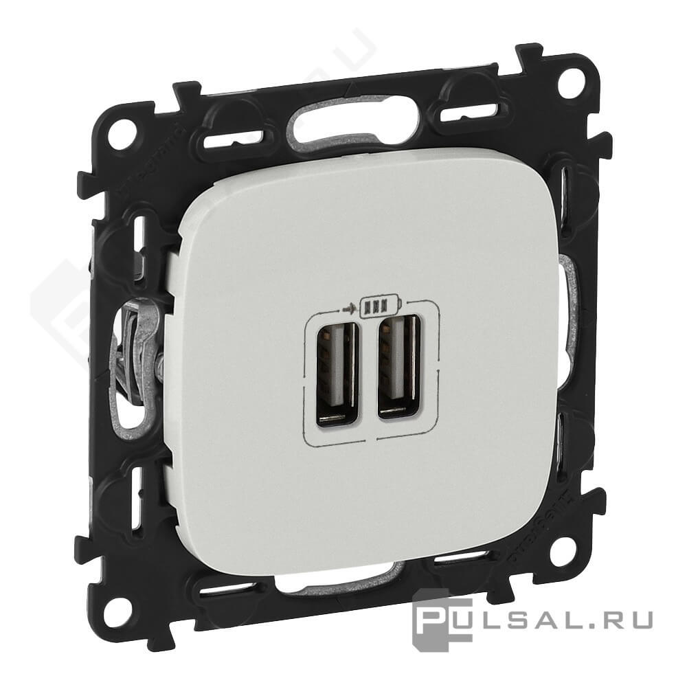 Розетка USB type-A, 1.5А Valena Allure, USB type-A 5V, двойная, цвет - жемчуг / перламутр