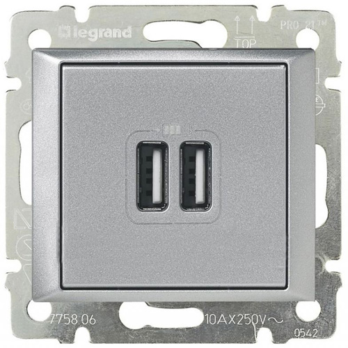 Розетка акустическая Valena, 1 пара, цвет - алюминий