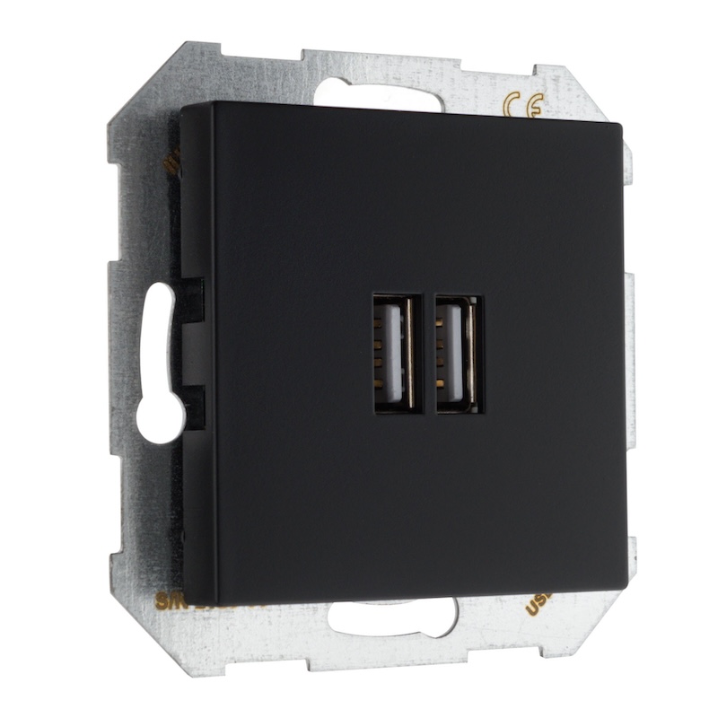 Розетка USB type-A+А, 3,4А Epsilon, Retro Liregus, USB type-A 5V, двойная, цвет - черный матовый