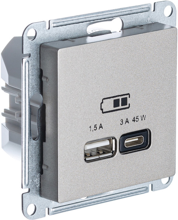 Розетка USB type-A+C 45 Вт с быстрой зарядкой Atlas Design Antique, AtlasDesign Air, Atlas Design, USB type-C 5V, USB type-A 5V, двойная, цвет - шампань