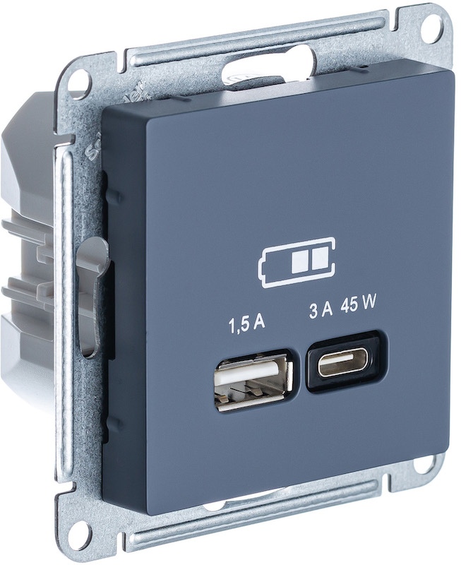 Розетка USB type-A+C 45 Вт с быстрой зарядкой Atlas Design Antique, AtlasDesign Air, Atlas Design, USB type-C 5V, USB type-A 5V, двойная, цвет - грифель
