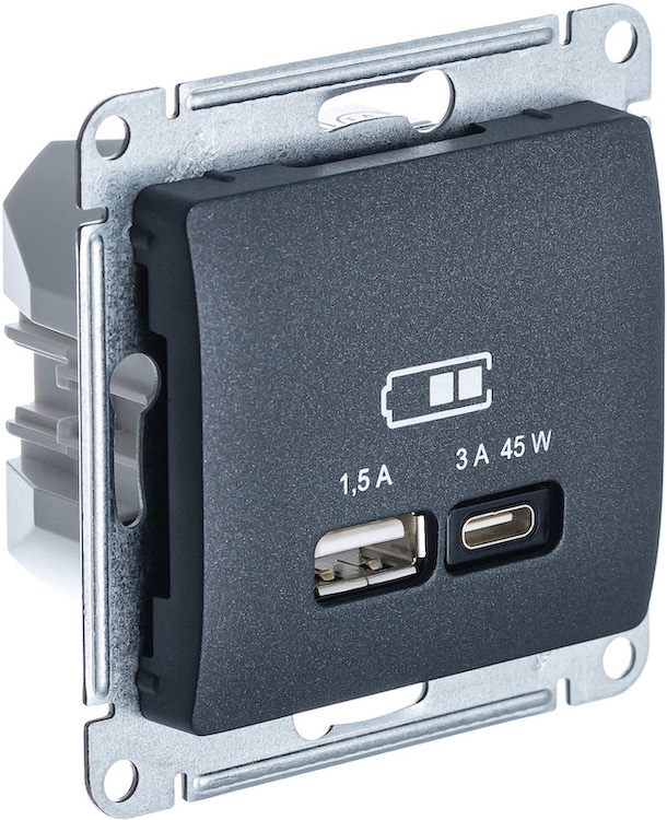 Розетка компьютерная RJ45 Cat.5e (UTP) Glossa, одинарная, цвет - антрацит