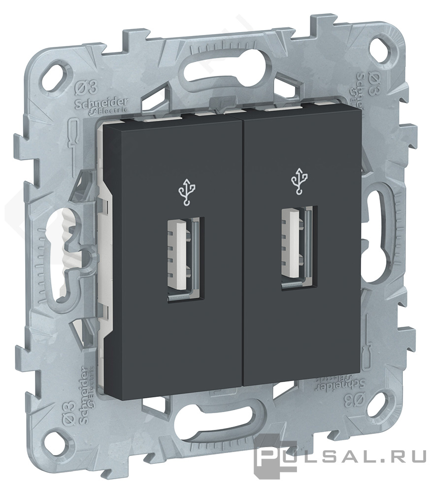Unica New Pure, Unica New Studio, без шторок, с заземлением, одинарная, безвинтовые клеммы, цвет - антрацит