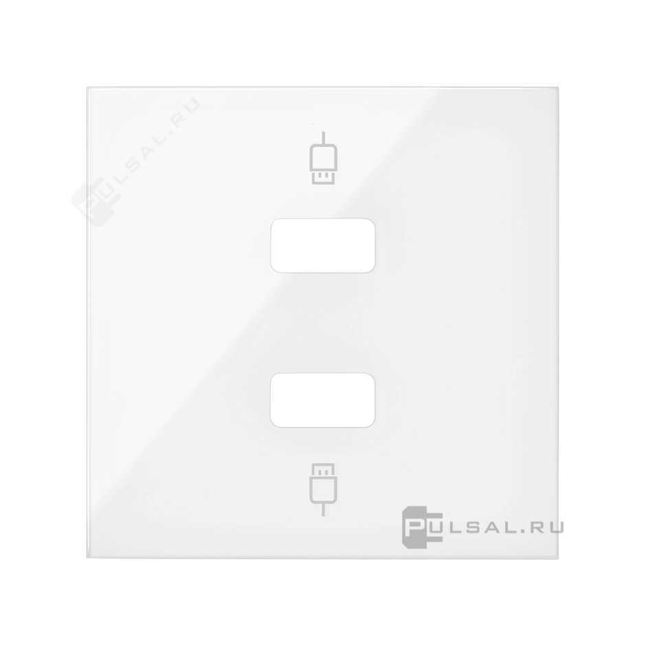 • Кит 2 поста, фронт. Накладка на 2 розетки Schuko с з/у USB SC цвета белый глянец S100