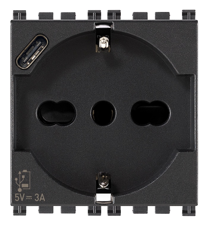 Зарядка USB C 3.0А с электрической розеткой Arke, USB type-C 5V, одинарная, цвет - антрацит серый