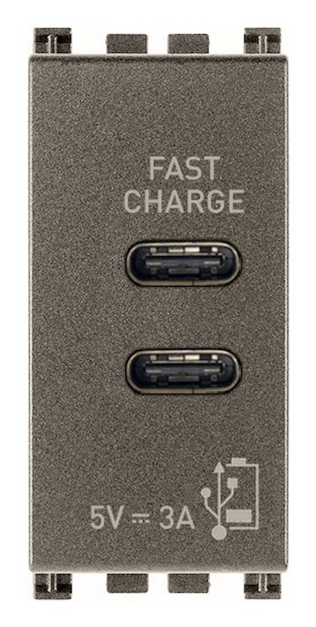 Зарядка USB type-C+C, 3А с быстрой зарядкой Arke, USB type-C 5V, двойная, цвет - металл