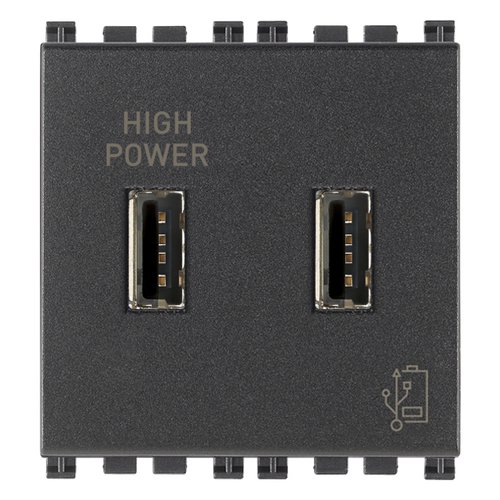 Зарядка USB type-A+A, 2.1А Arke, USB type-A 5V, двойная, цвет - антрацит серый