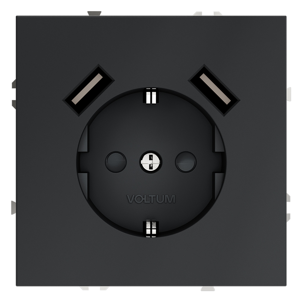Электрическая розетка с зарядкой USB A+A, 3.2А S70, USB type-A 5V, Электр. с USB, двойная, цвет - графит