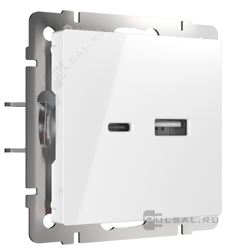 Alumax, Split, Slab, Senso, Baguette, Acrylic, Platinum, Elite, Snabb, Stream, Flock, Stark, Fiore, Favorit, Diamant, Aluminium, Antik, Metallic, USB type-C 5V, USB type-A 5V, Электр. с USB, двойная, цвет - белый